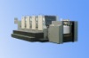 Features of Quarto 4 Color Commercial offset Printing Machine: 1. Solid casting iron board (60mm) ensures the high intensity, remarkable rigidity, and good durability of the machine structure. 2. The offset printer adopts accurate precision skew gear transmission and is equipped with clockwise recycled lubricating device to guarantee the print quality and the extended service life of mechanical components. 3. Adopt PLC system in electrical control, separate machine unit control, network transmit, stable and reliable. 4. Double diameter impression cylinder and sheet delivery cylinder make it applicable to a wider paper range, with improved printing speed. 5. Frequency inverter, the max printing speed is 13000 sheets/hour. 6. Upper swing gyral sheet delivery makes the delivery steady and accurate. 7. Stream feeder feeding and vacuum suction belt on the sheet delivery bridge achieve high speed printing with a wide paper range. 8. Plate cylinder and transfer cylinder is equipped with the bearer, thus achieving balance plate pressure and good quality prints. 9. pneumatic clutch, without mechanical impact, quick action and stable performance. 10. Continuous alcohol dampening system with chiller recirculation, separated or integrated mode to suit the different applications. 11. Vacuum suction and upper blower at delivery to accomplish smooth and registered pile delivery. 12. Semi-automatic plate change system brings quick and easy plates change. 13. Plate can be adjusted in axial, circumferential and skew direction without shutdown. 14. Separate inking zone, dampening and inking volume can be adjusted through the human-machine screen. 15. The water and ink tracking speed is self-adjustable in accordance with main motor speed to ensure better the stability of water and ink. 16. Utilize the impressive offset printing technology. Specification of Quarto 4 Color Commercial offset Printing Machine: Printing speed 2600-1300(s/h) Max. sheet size 660×480(mm) Min. sheet size 305×230(mm) Paper thickness 0.04—0.6(mm) Max. printing area 650×470(mm) Feed pile height 900(mm) Delivery pile height 900(mm) Plate size 670×560×0.3(mm) Inking rollers 19pcs Water rollers 4pcs Plate form rollers 5pcs(4pcs of ink, 1pcs of dampening) Plate dampening Alcohol Consumed power 20KW Machine dimensions 6800×3100×1900(mm) Machine weight 15000kg Power Three-phase AC 380V/50Hz